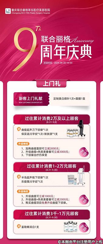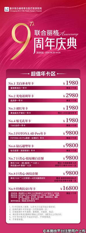 重慶聯(lián)合麗格9周年慶給大家送福利啦,上門禮,消費(fèi)禮,美膚自選區(qū),超值年卡區(qū),美容福利超多。
