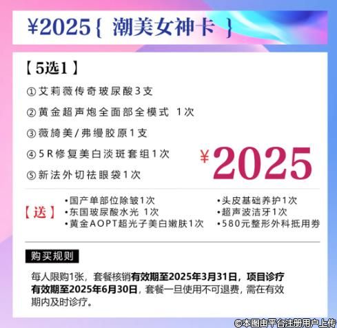 脫毛年卡、玻尿酸水光0元送
