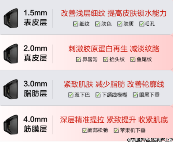 相比一年需做2-3次的超聲炮,美拉美歐版超聲刀全臉提升更精準(zhǔn)(覆蓋多個層次)。