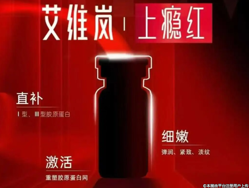 艾維嵐·上癮紅:屬于童顏水光,專注于膚質(zhì)改 善,通過微球刺激膠原,適合毛孔粗大、暗沉、初抗衰人群