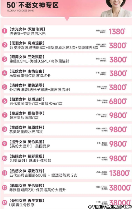 四大分齡專區(qū),直擊塑美訴求,從 20+精致女神到50+不老女神。